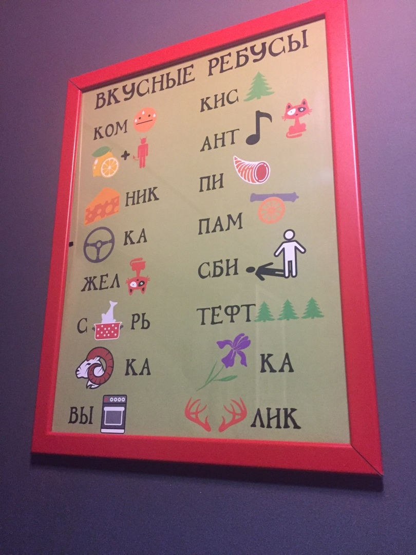 Уборная получила название «филосовской комнаты». Она, кстати, здесь одна на всех, поэтому в «час пик» придется подождать своей очереди. Внутри комнаты любителей поразмышлять ждут «вкусные ребусы». Видимо именно так владельцы заведения на деле показывают «юмористический подход» в оформлении подачи информации для гостей.
