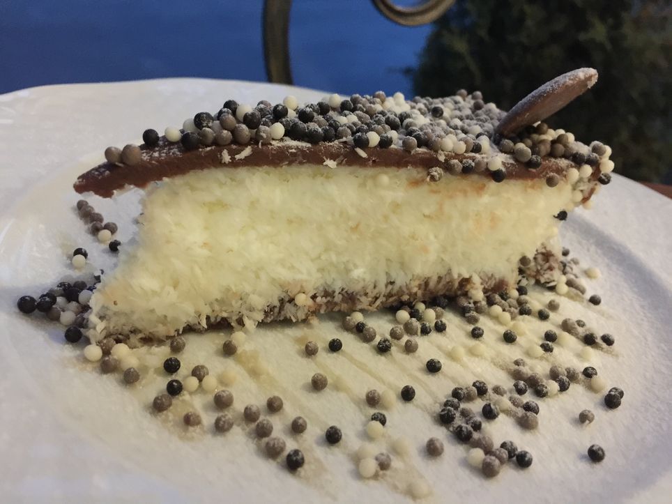 Баунти был довольно большим по размеру, с потрясающим шоколадом (насколько он был бельгийским, как заявлено в меню, осталось тайной) и в меру пропитанным кокосом. Лишним был только воздушный рис. Но это уже на вкус и цвет.