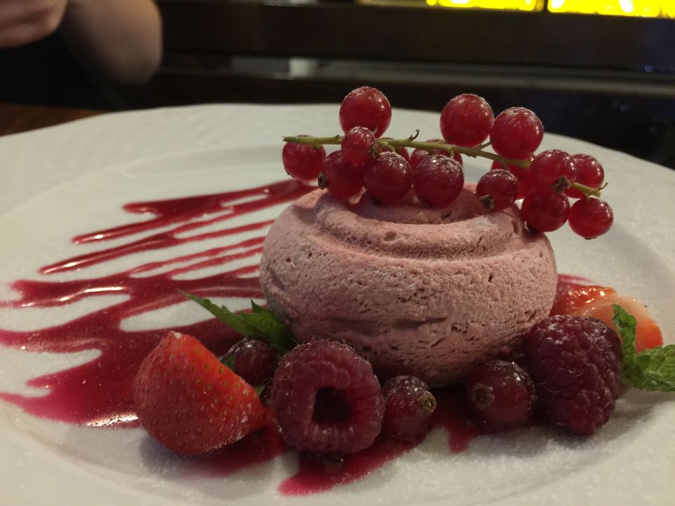 Муссовый десерт — очень нежный, кисло-сладкий. Бельгийский шоколад и свежие ягоды его отлично дополняли и оттеняли. Специально для тех, кто не любит очень сладкие десерты.
