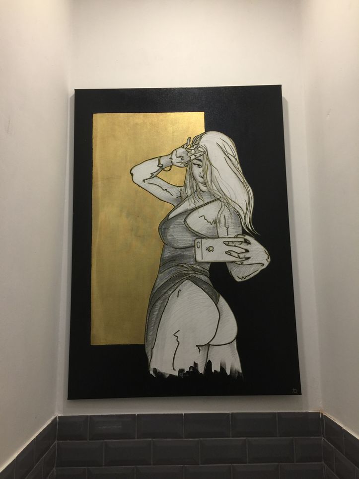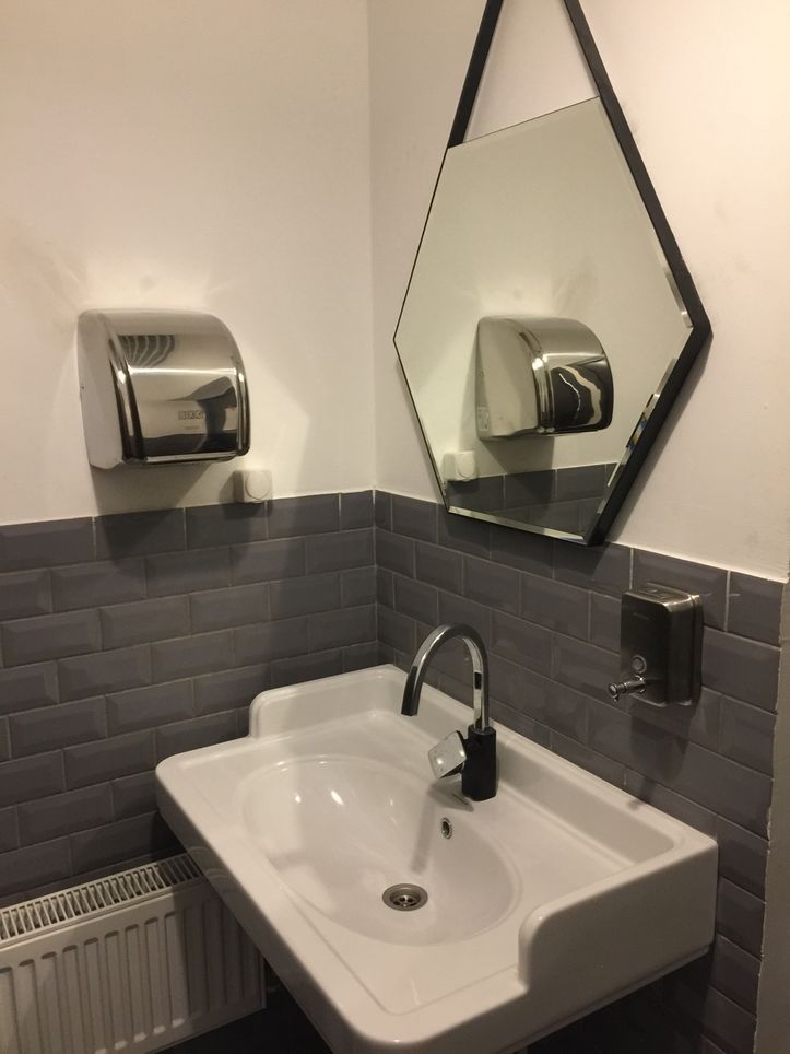 Официант заказ записал, и настало время наведаться в уборную. Там гостей ожидают две кабинки с чистыми унитазами, туалетной бумагой и картинами с изображениями «селфи-девушек». Задумка шпиону показалось весьма интересной, особенно для туалета. Также уборная оборудована раковиной, краном с горячей и холодной водой, сушилкой (которая, правда, расположена очень близко к раковине и срабатывает, когда моешь руки).