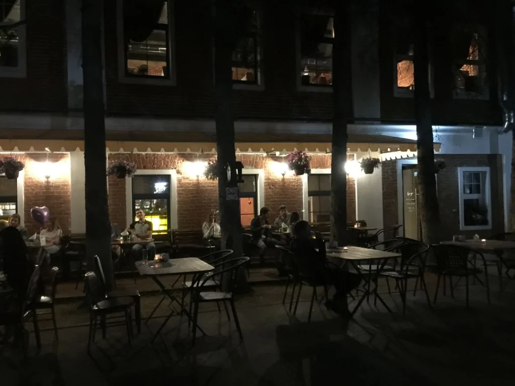 По дороге из туалета шпион осмотрел первый этаж заведения. Старинные стены из красного кирпича, бар из подсвеченного оникса (очень красивый!), приглушенный свет. На широких подоконниках уложены подушки, можно присесть и отдохнуть.