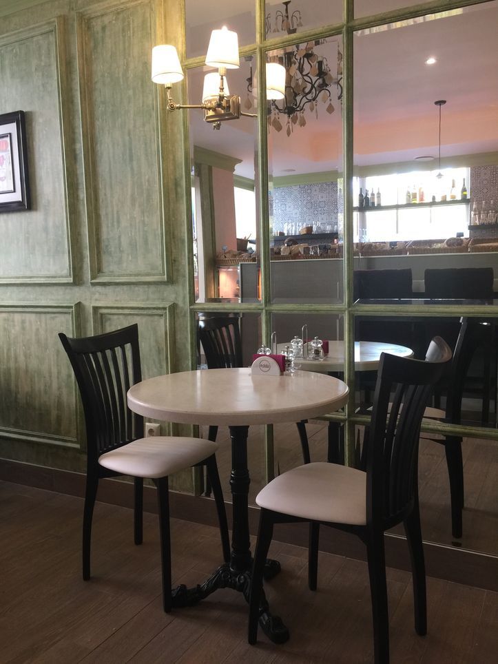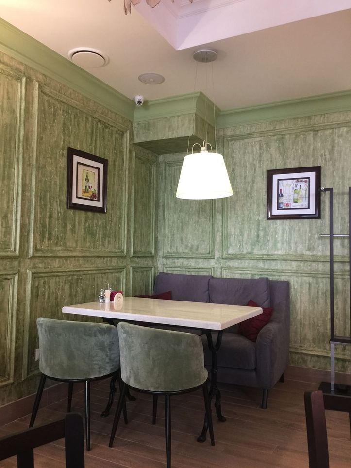 Заведение не так давно открылось, и потому мебель блестит новизной. Стены цвета мякоти спелого авокадо, зеркала
