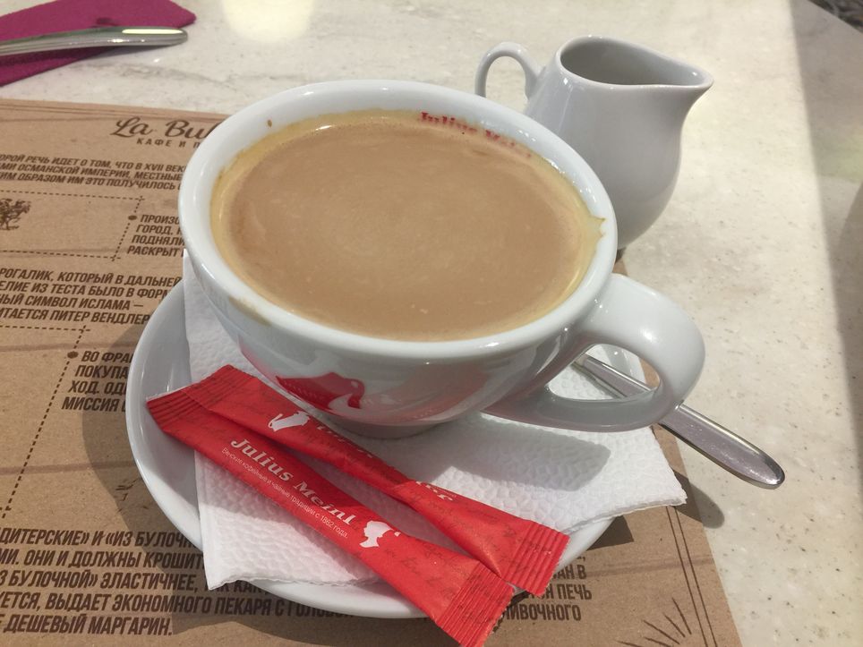 принесли в самом начале, и сливочник. Напиток оказался мягким, нежным, ароматным, «не горелым». То,