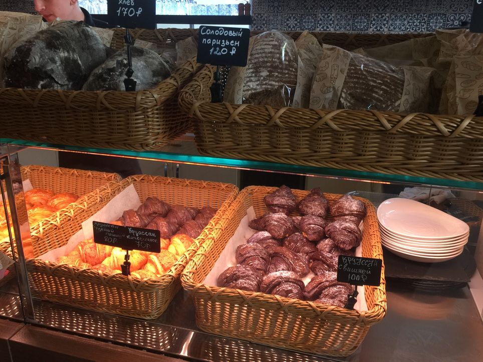 Белые батоны и ржаные заварные хлеба, сдоба с хрустящей корочкой, чиабатты, багеты, печенья и пирожные привлекают