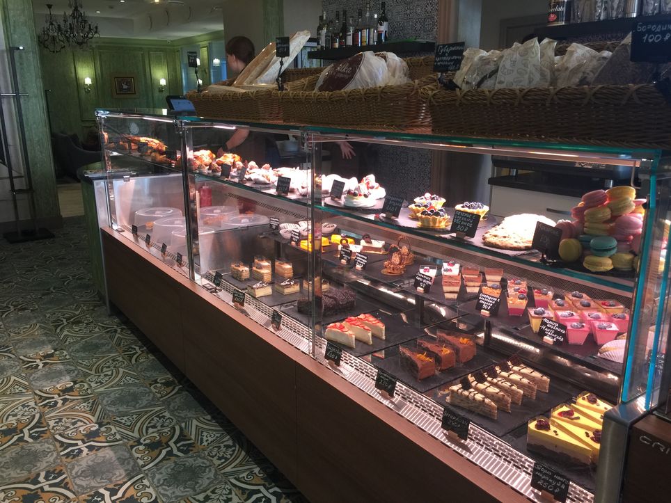 Пока официант вежливо предлагает повесить ваше пальто, можно осмотреть весьма привлекательный интерьер и витрины