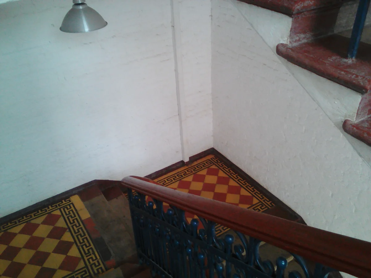 Красивая лестница старого здания поднимет вас на второй этаж, приятно удивляя плиткой. Вообще плитка тут везде красивейшая (особенно в уборной!), но, очевидно, это заслуга не хозяев «Маркса». Хотя можно поставить им в плюс то, что они ее сохранили.