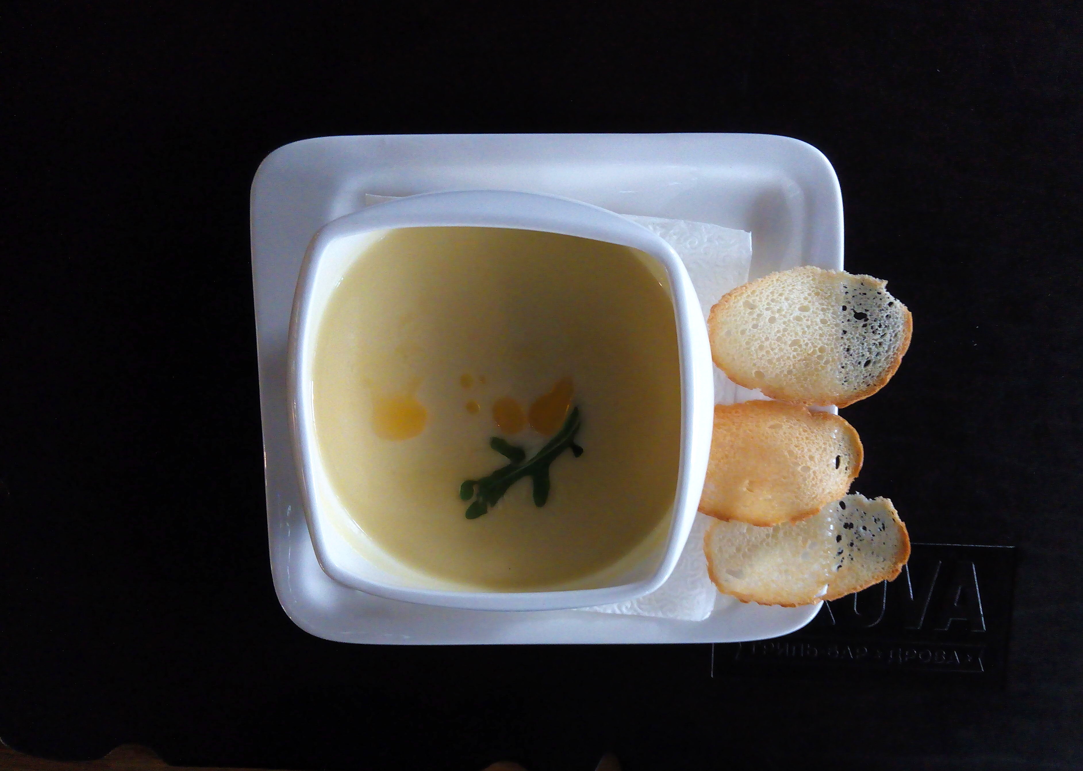 Сырный суп — ужас номер два. Водянистое, совершенно не приправленное ни чем пюре, консистенцией напоминающее разбавленный крахмал. Худший сырный суп, что я ела в жизни. Один плюс - горячий.