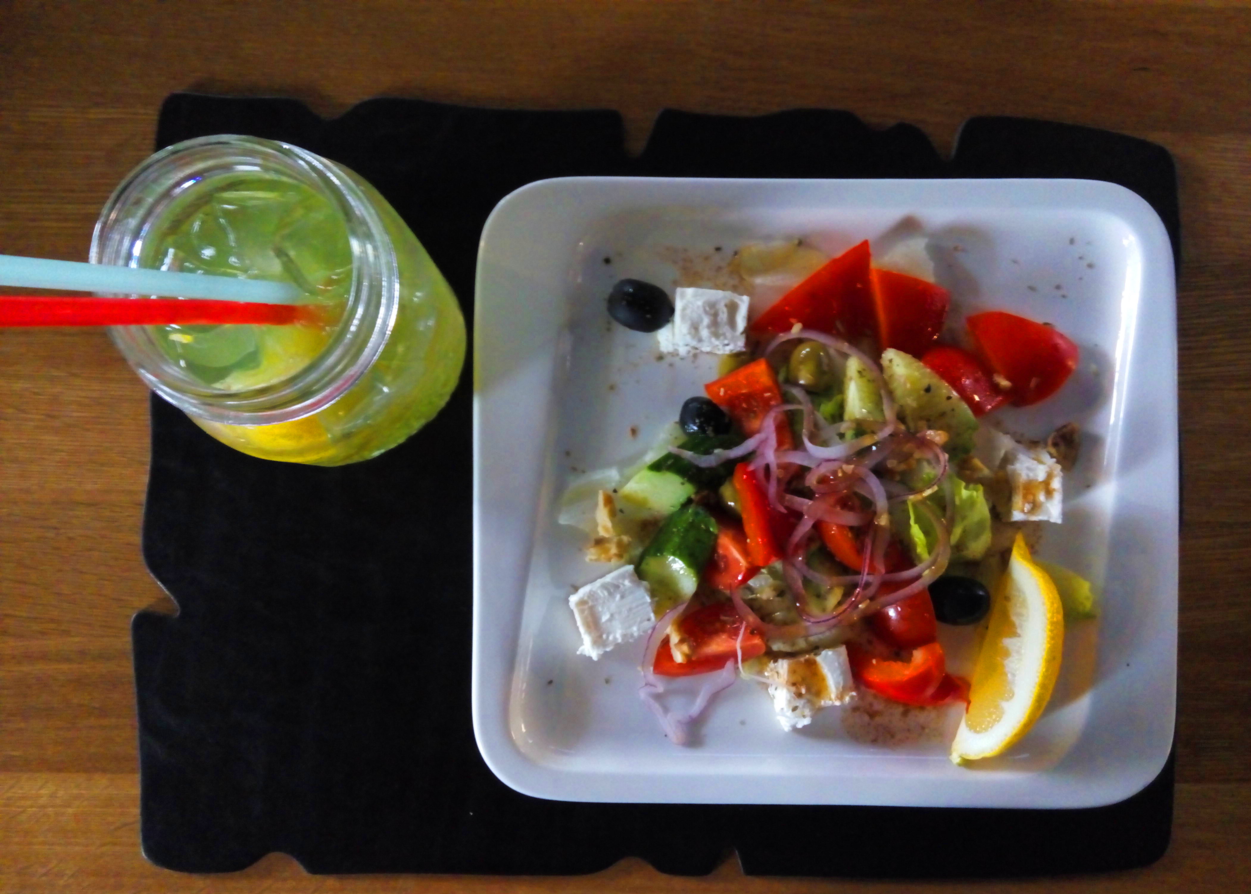 Салат «Греческий» оказался ужасен - заправки практически нет, одна сухая трава и чересчур крупно порезанные овощи. Повар просто не захотел сделать его съедобным. А ведь это один из моих любимых салатов.