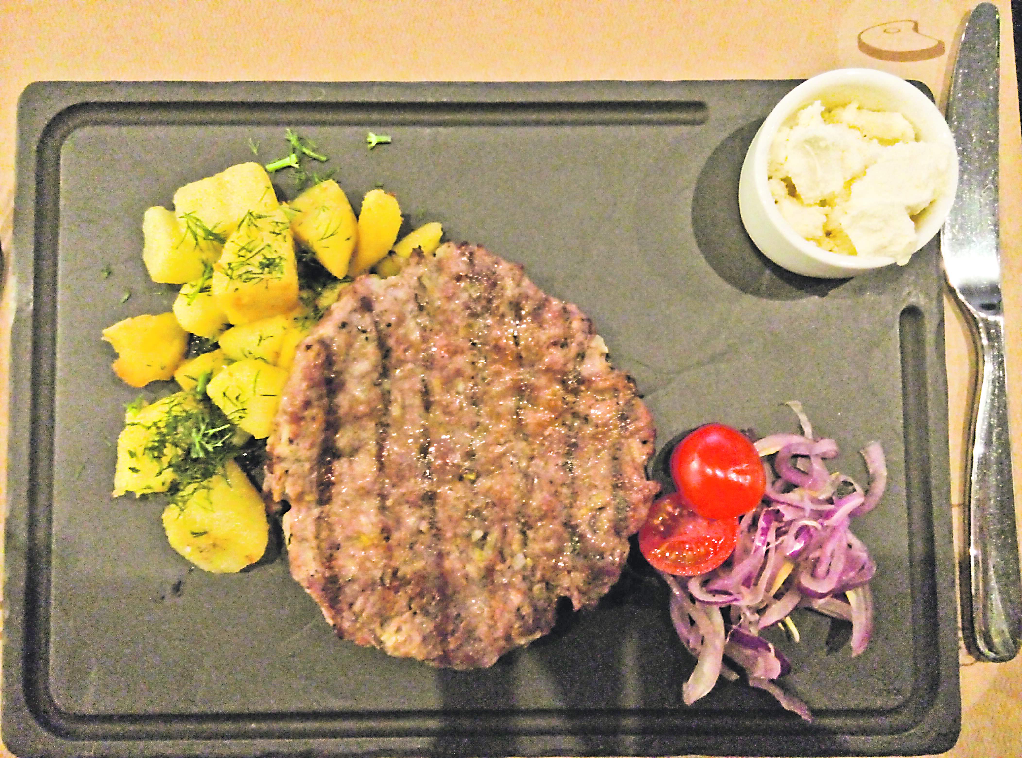 Плескавица - сербское блюдо из рубленого мяса с сыром «Каймак» и картофелем. Представляет из себя большую плоскую котлету, приготовленную на гриле. Просто и вкусно. Картофель напомнил чипсы из детства, сейчас таких не найдешь. Сыр консистенцией схож со сливочным маслом, на вкус – нежный и сливочный. Хорошо идет в качестве соуса.