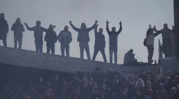 Во время матча "Арсенал" - "Спартак" несколько болельщиков столичной команды забралась забрались на крышу стадиона