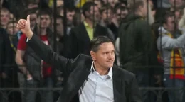 Не успели наши футболисты ступить на родную землю, а у ворот спортивного комплекса «Желдормаш», куда они должны были прибыть, уже собралась большая толпа поклонников.
