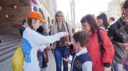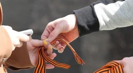 В канун празднования Дня Победы все желающие могут прикрепить себе на лацкан одежды «Георгиевскую ленточку»