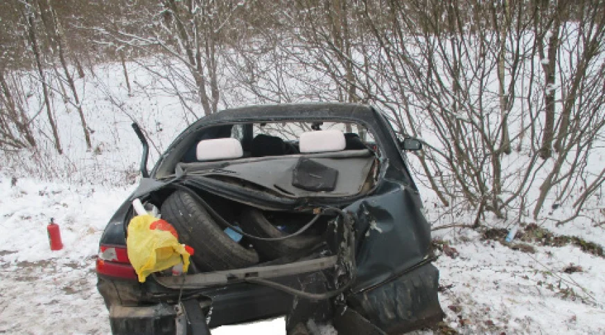 Под Тулой "Ниссан" занесло на скользкой дороге и он врезался в дерево