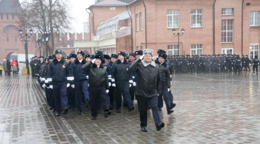Полицейские промаршировали по территории Кремля в рамках торжеств, посвященных День сотрудников внутренних дел