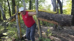 Николай Чернов изготовил штанги, трапеции и брусья для занятий спортом из дерева.